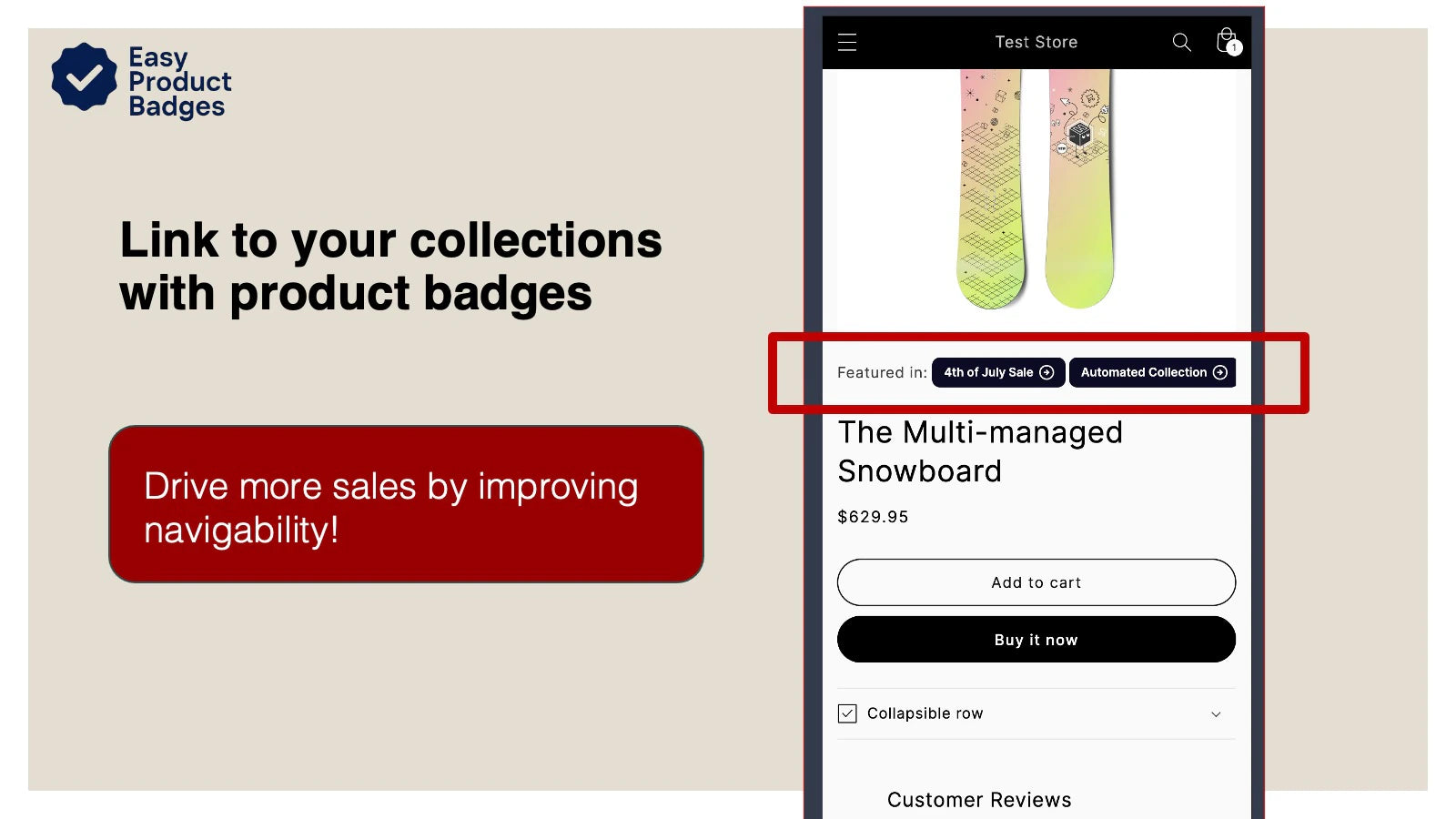 Help customers explore related products by surfacing collection-based badges directly on product pages.