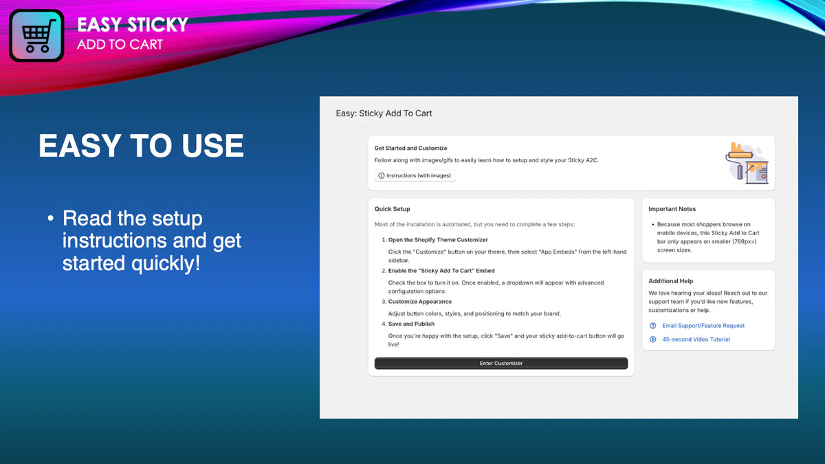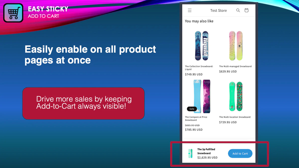 Enable and manage Sticky Add to Cart functionality without coding using Shopify’s theme customizer.